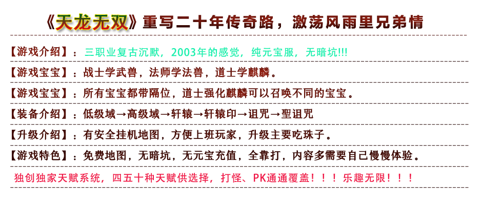 Copyright (c) 2026 天龙无双科技 All Rights Reserved 正版授权 · 网站技术支持:天龙无双沉默工作室 抵制不良游戏,拒绝盗版游戏。注意自我保护,谨防受骗上当。适度游戏益脑,沉迷游戏伤身。合理安排时间,享受健康生活